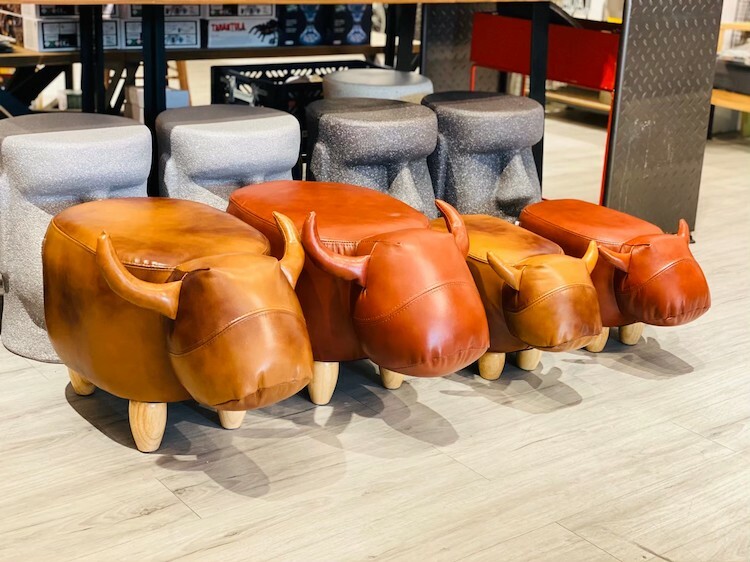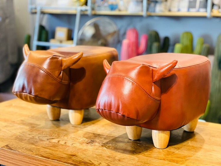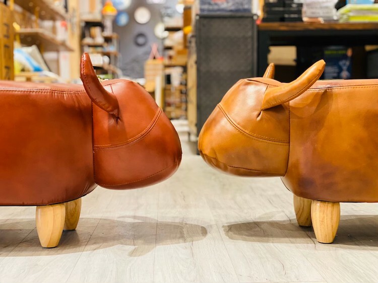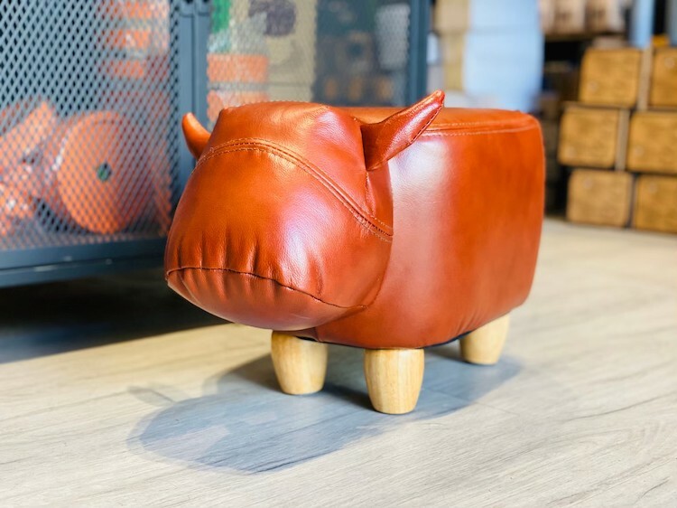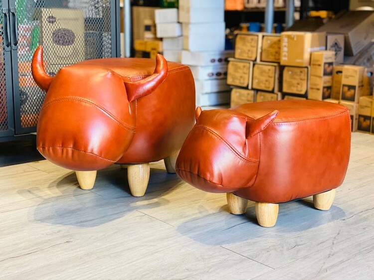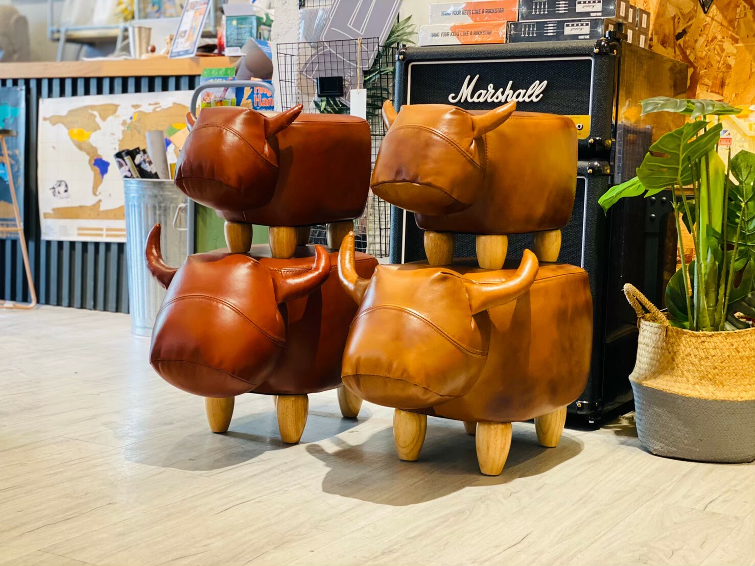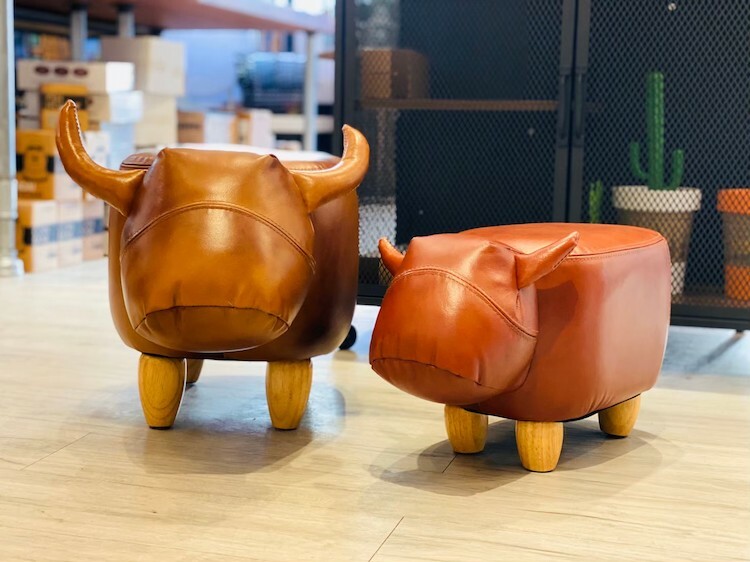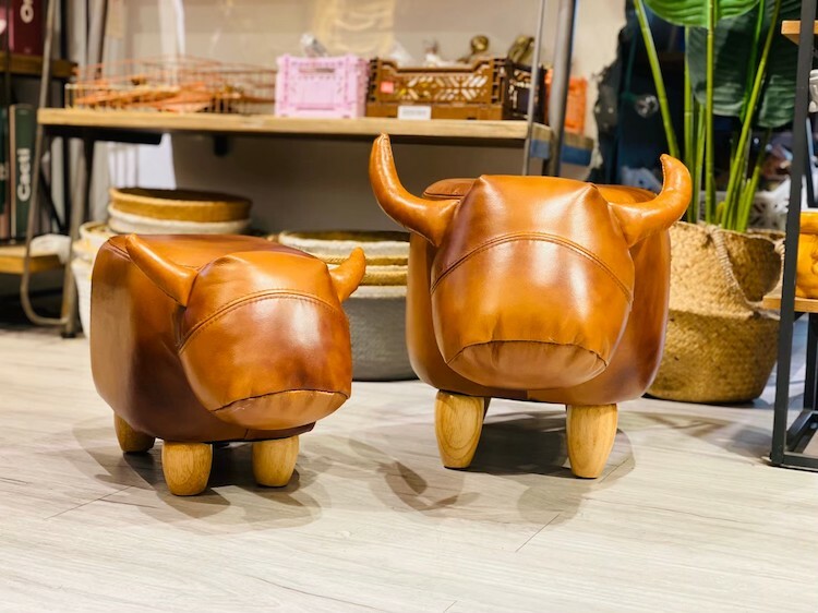材質:高密度彈力回綿+櫸木實心腿凳+小牛皮(身體+頭部)+PU皮革(牛角)