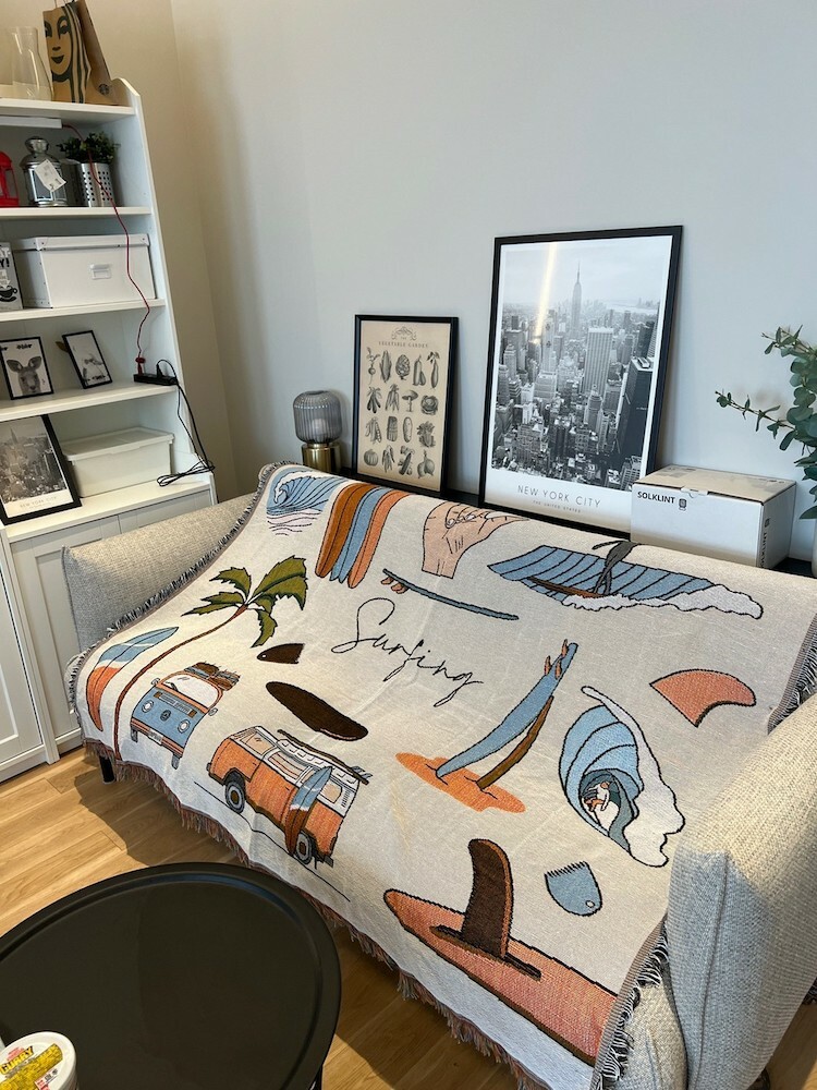 功能:雙面可用,部分毯子有兩種不同花色,功能多樣可當沙發毯、保暖毯、桌布、掛毯、地毯等等