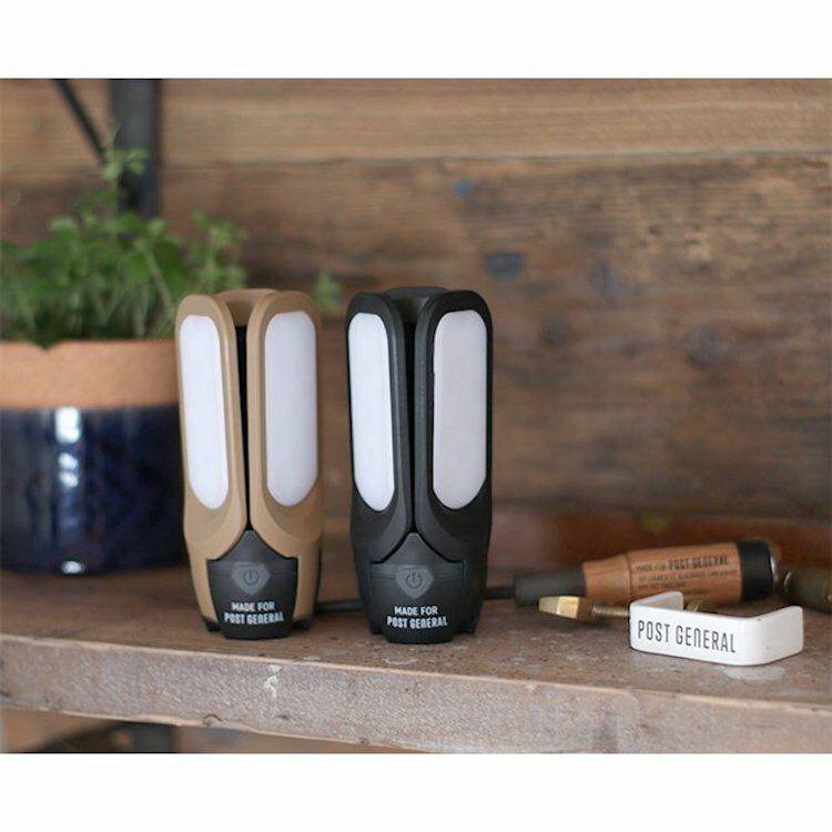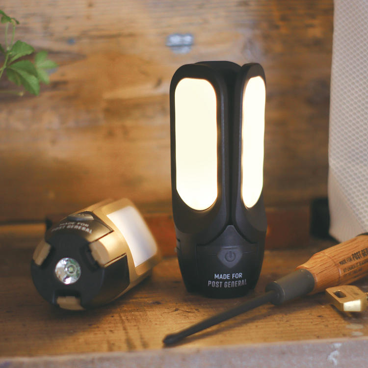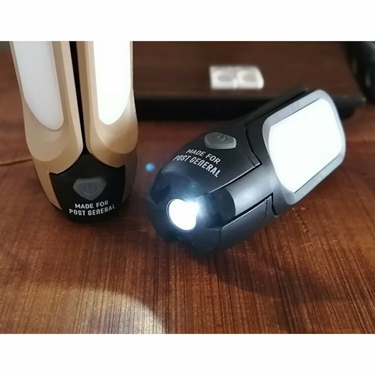POST GENERAL多功能太陽能充電LED燈,平時充電使用,遇到停電等緊急情況時將3片LED板展開即可使用太陽能充電,作為防災手電筒與多種用途照明。