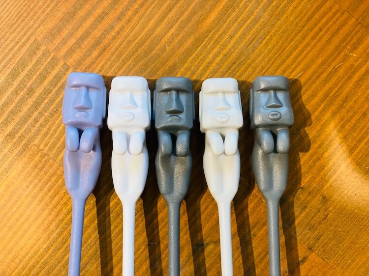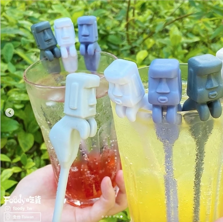 摩艾的呆萌療癒造型,可以掛在杯緣露出翹屁屁當作攪拌棒或是小湯匙,咖啡、果汁、沙瓦、調酒及冰沙等各式飲品都很適合哦!