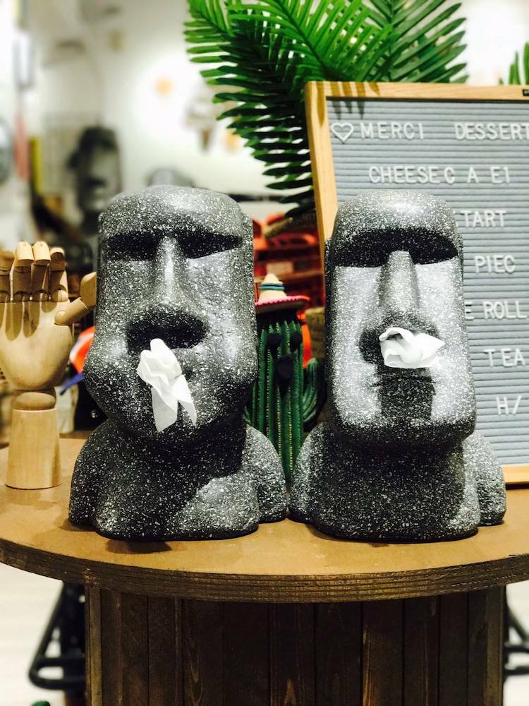功能:仿造復活島Moai石像,除了是超酷的擺飾外同時也兼具面紙盒的功能