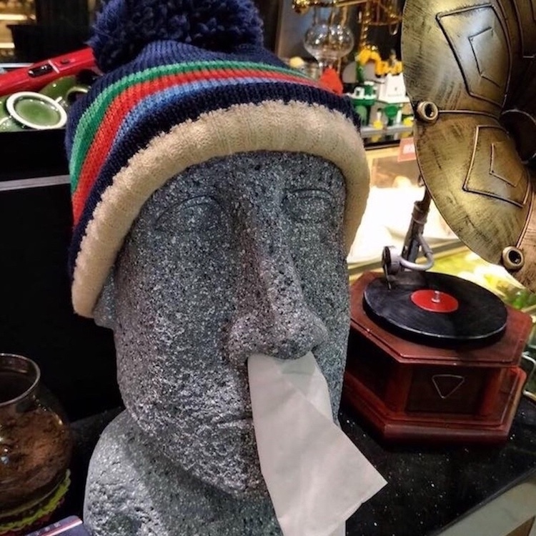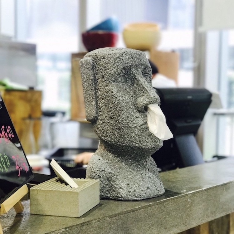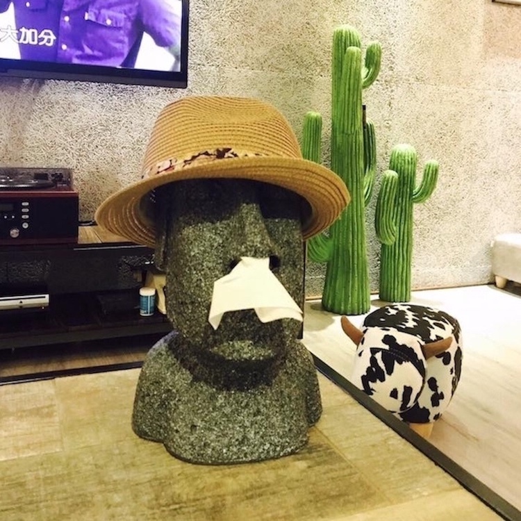 功能:仿造復活島Moai石象,凹凸表面增添質感及歲月風蝕的感覺,除了是超酷的擺飾外同時也兼具面紙盒的功能唷