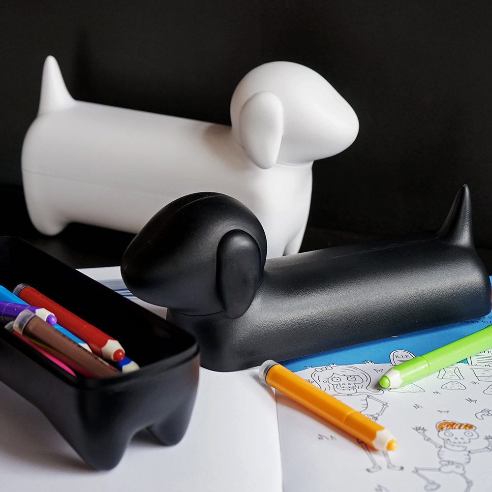 你可以在臘腸狗裡收納各式小物,他不管是當作筆盒或是化妝品收納盒都沒問題,隨你愛裝什麼就裝什麼。