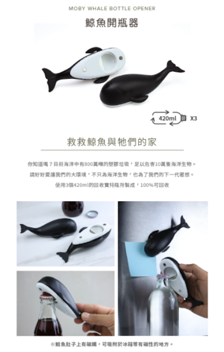 ※鯨魚肚子上有磁鐵,可吸附於冰箱等有磁性的地方。