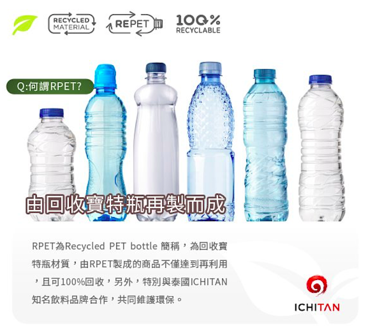 (使用3個420ml的回收寶特瓶所製成,100%可回收)
